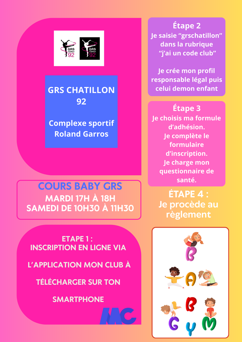 L'association GRS Châtillon est heureuse de vous proposer l'accès aux cours de BABY GRS :